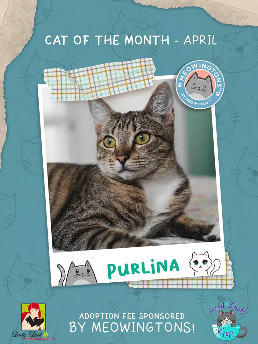 Every month, Meowingtons donates adoption fees to support the 501(c)(3) nonprofit rescue and help find cats in need a forever home!