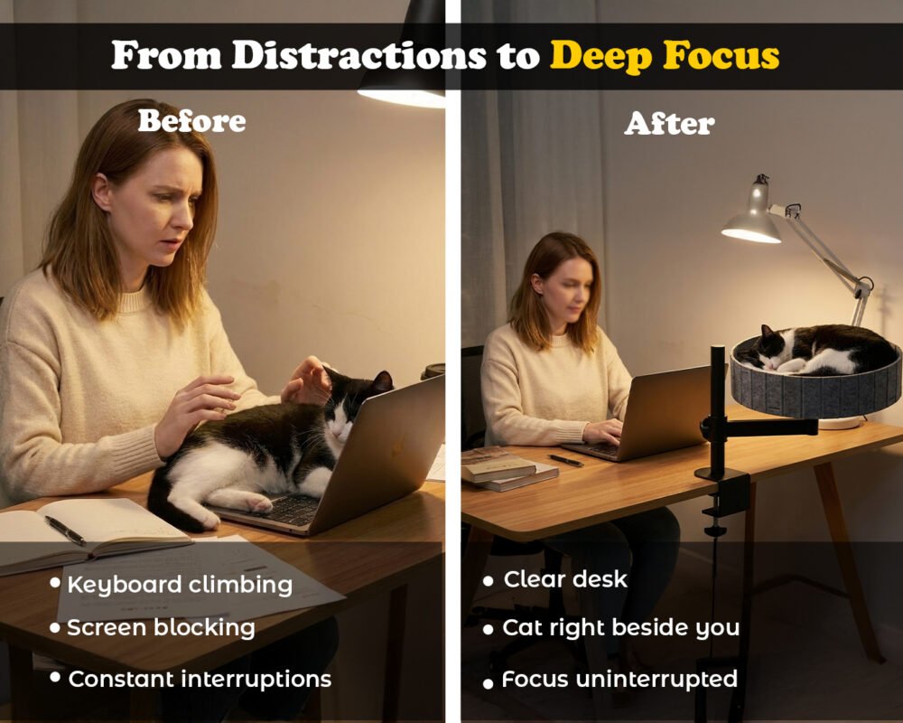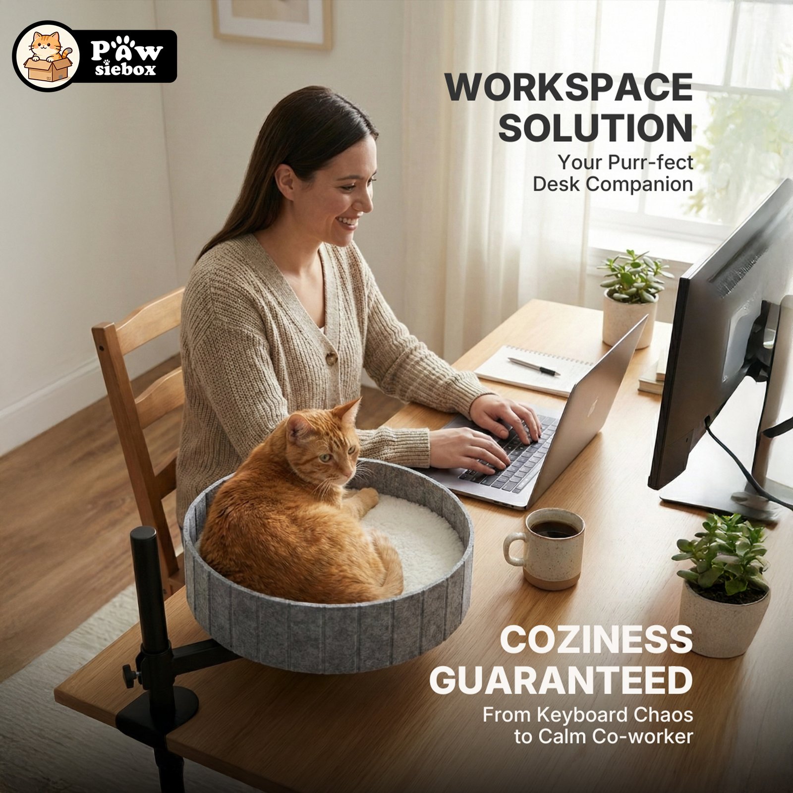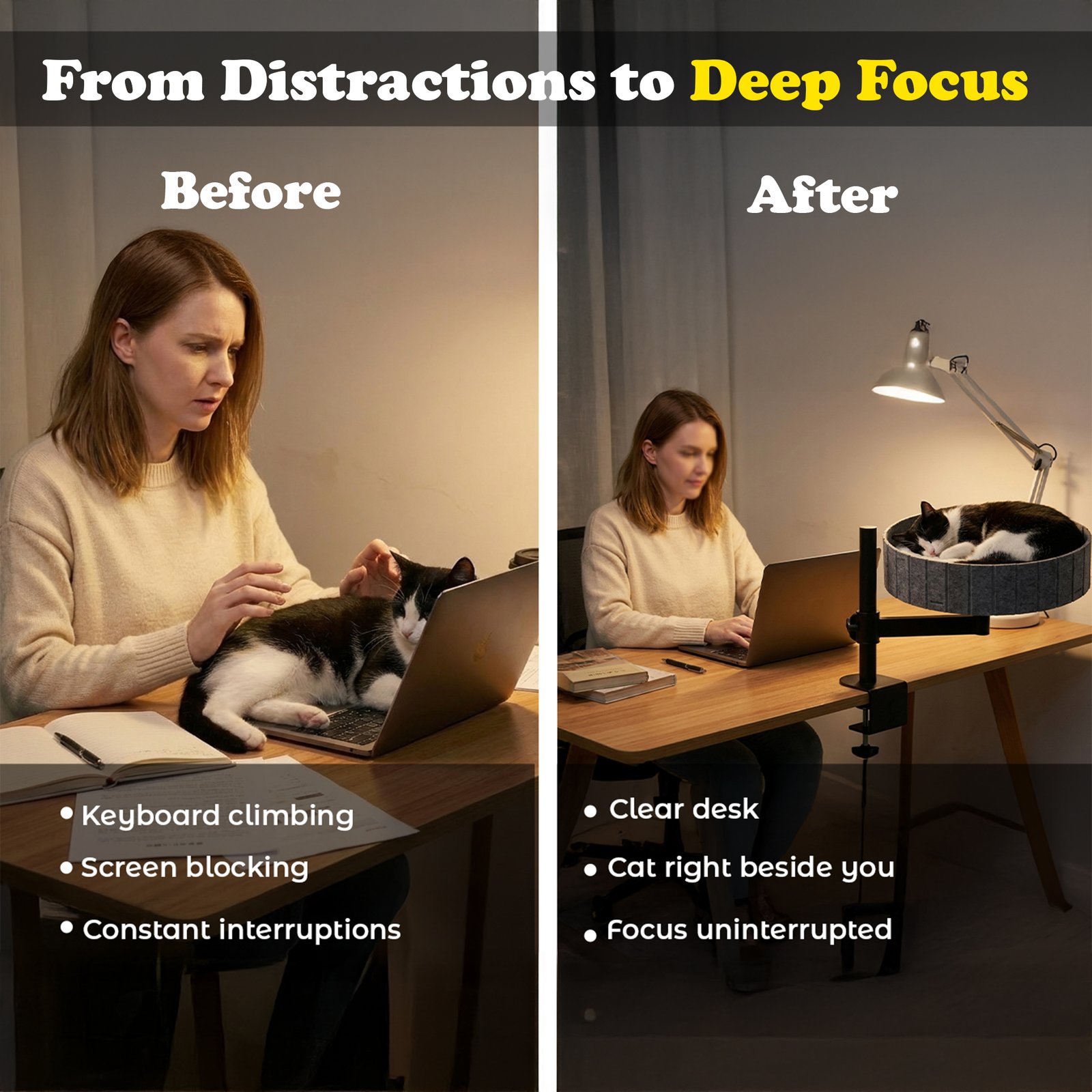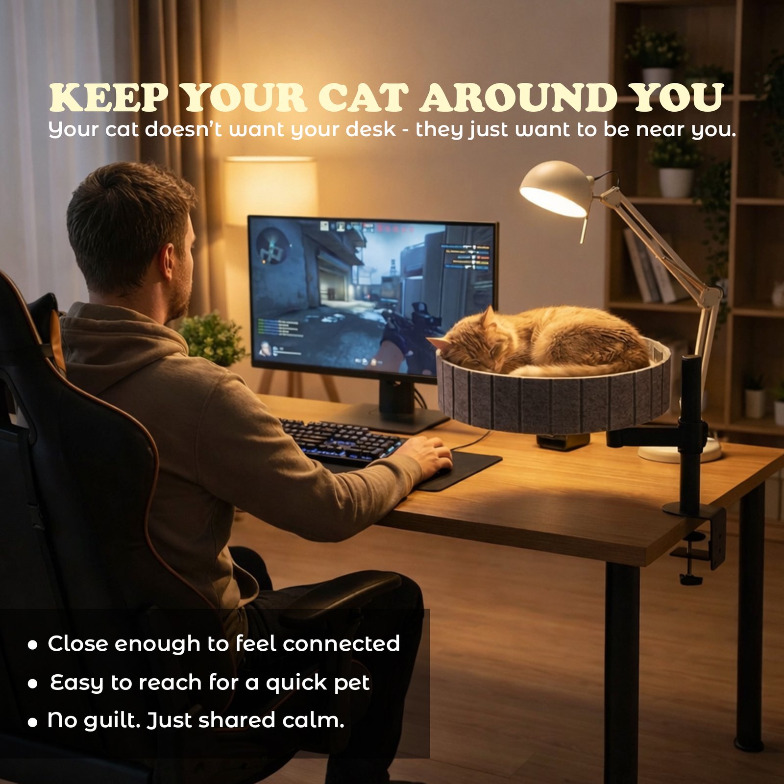 Cat Desk Bed — a simple solution for a calmer workspace, where you stay focused and your cat stays happy 🐱💛